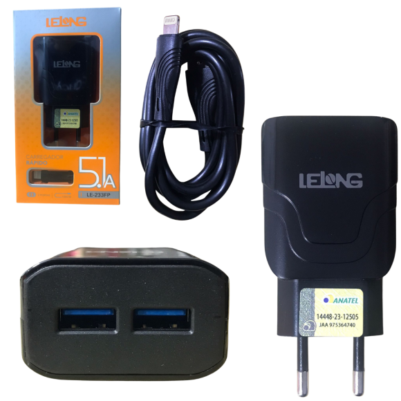 2. CARREGADOR IOS 5.1A C/2 ENTRADAS USB - LE-233FP